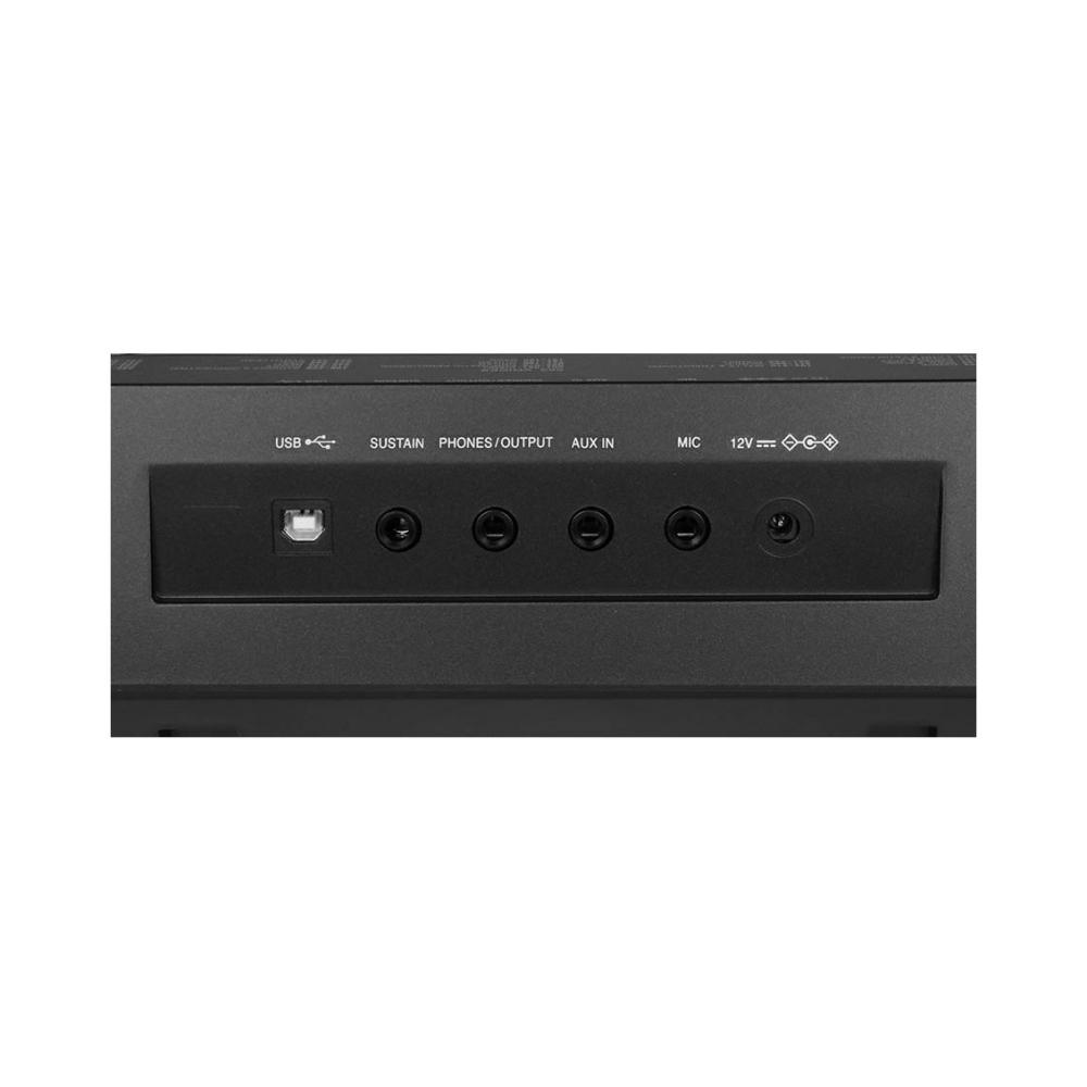 - Συνδέσεις: DC-Power / Headphones / Line-out (1/4″ jack) / Sustain (1/4″ jack) / USB / Aux-In (1/4″ stereo jack) / Microphone (1/4″ jack)