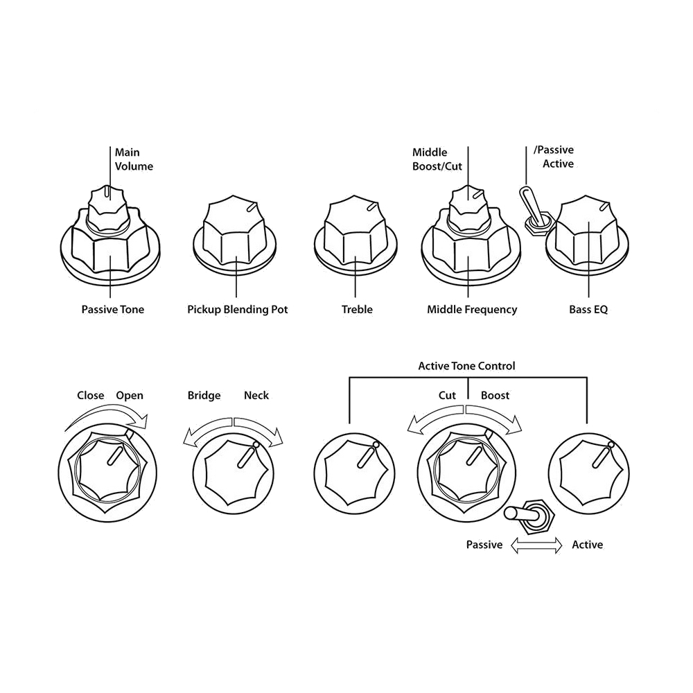 - Controls: 1x Volume / 1x Tone / 1x Pickup Blender / 3-Band EQ